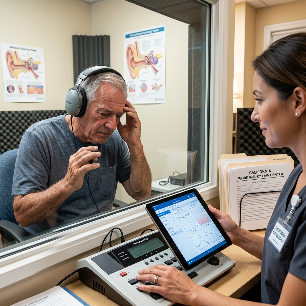California requires objective, measurable evidence of hearing loss. An audiological test establishes your current hearing across different frequencies. The pattern of your loss matters: occupational noise exposure typically affects hearing in the 3,000 to 6,000 Hz range first, which is distinctive compared to age-related hearing loss patterns.