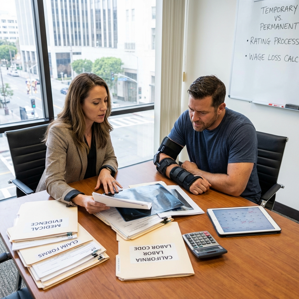 Once you’ve recovered as much as possible, the focus shifts to permanent disability. This is where lasting impairment gets evaluated and compensated. California uses a Permanent Disability Rating Schedule that assigns percentages to specific injuries based on age, occupation, and extent of impairment.