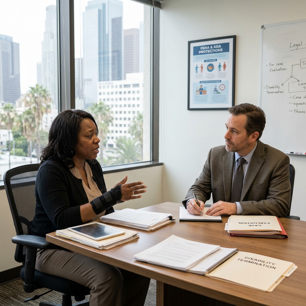 Actionable step: When you first contact us, have available any termination letter, performance reviews, accommodation request emails, and documentation of your disability or injury. These documents accelerate our investigation.